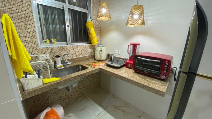Excelente oportunidade no Gonzaguinha, a poucos passos da praia! Apartamento com uma pequena vista lateral para o mar, em prédio com elevador e portaria 24 horas, garantindo conforto e segurança.