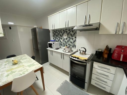 O condomínio oferece portaria 24 horas, salão de festas com espaço gourmet, área externa com churrasqueira e forno a lenha, além de uma vista incrível para o mar.