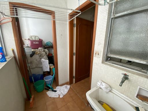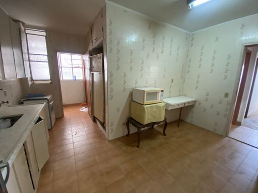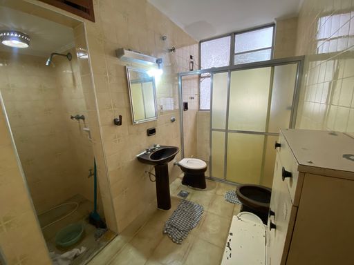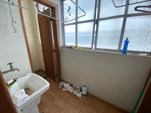 São 2 dormitórios, sala ampla e ambos com vista mar, banheiro grande, cozinha ampla e área de serviço com dependência completa. Entrada social e serviço.