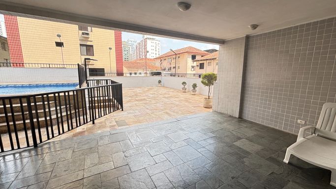 Prédio com piscina, salão de festas, vestiário, portaria 24 horas.
