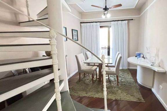 1º piso - 1 dormitório, banheiro social, sala de jantar, sacada, cozinha, área de serviço, banheiro de serviço.