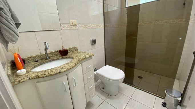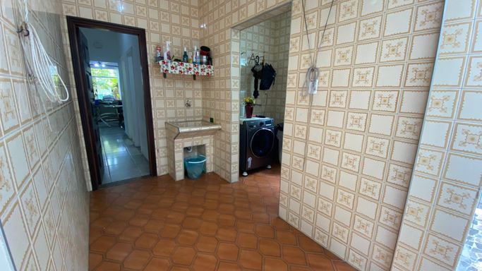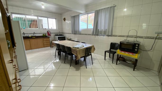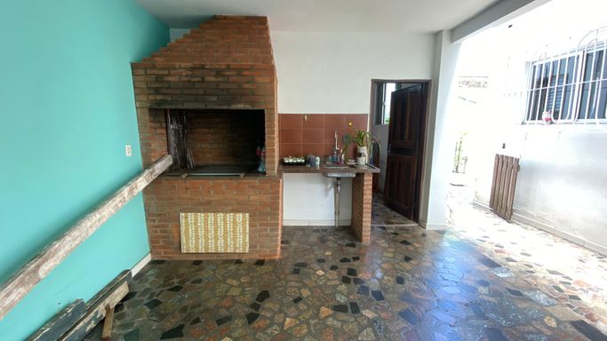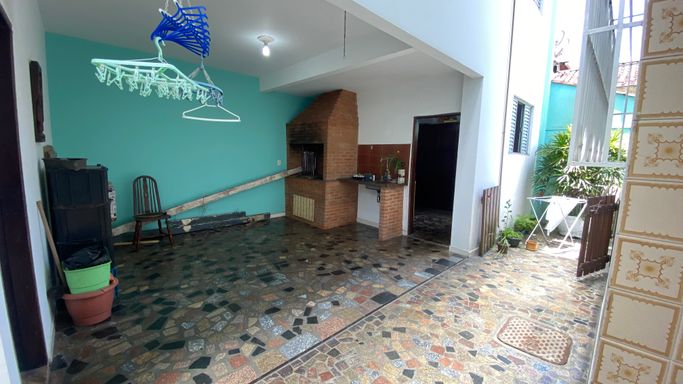 Nos fundos, há uma ótima área de lazer com churrasqueira, perfeita para receber amigos e familiares, além de dois dormitórios adicionais, sendo um deles atualmente utilizado como espaço de marcenaria, com fácil adaptação conforme a necessidade do novo proprietário.