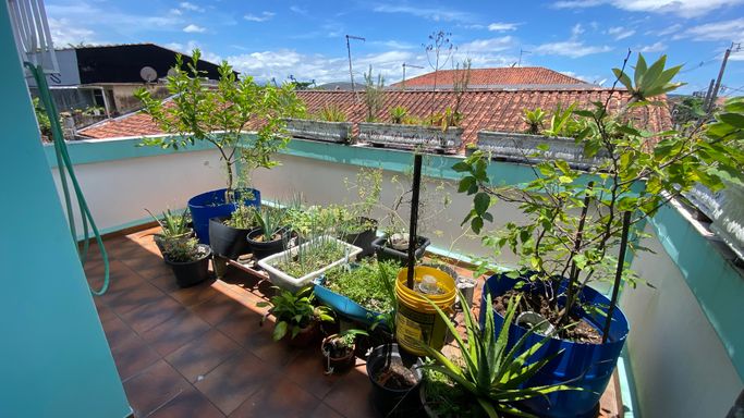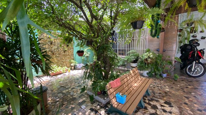 A casa é repleta de árvores, incluindo árvores frutíferas, criando um ambiente acolhedor, tranquilo e integrado à natureza — um verdadeiro refúgio urbano.